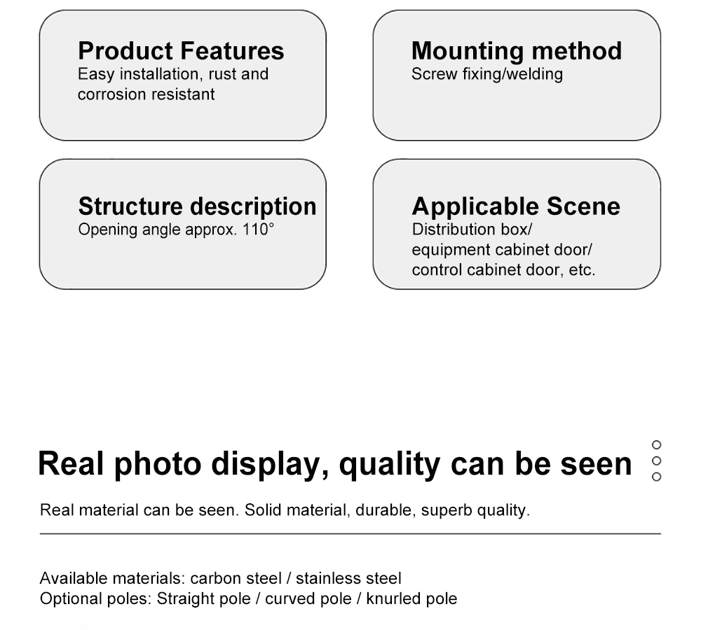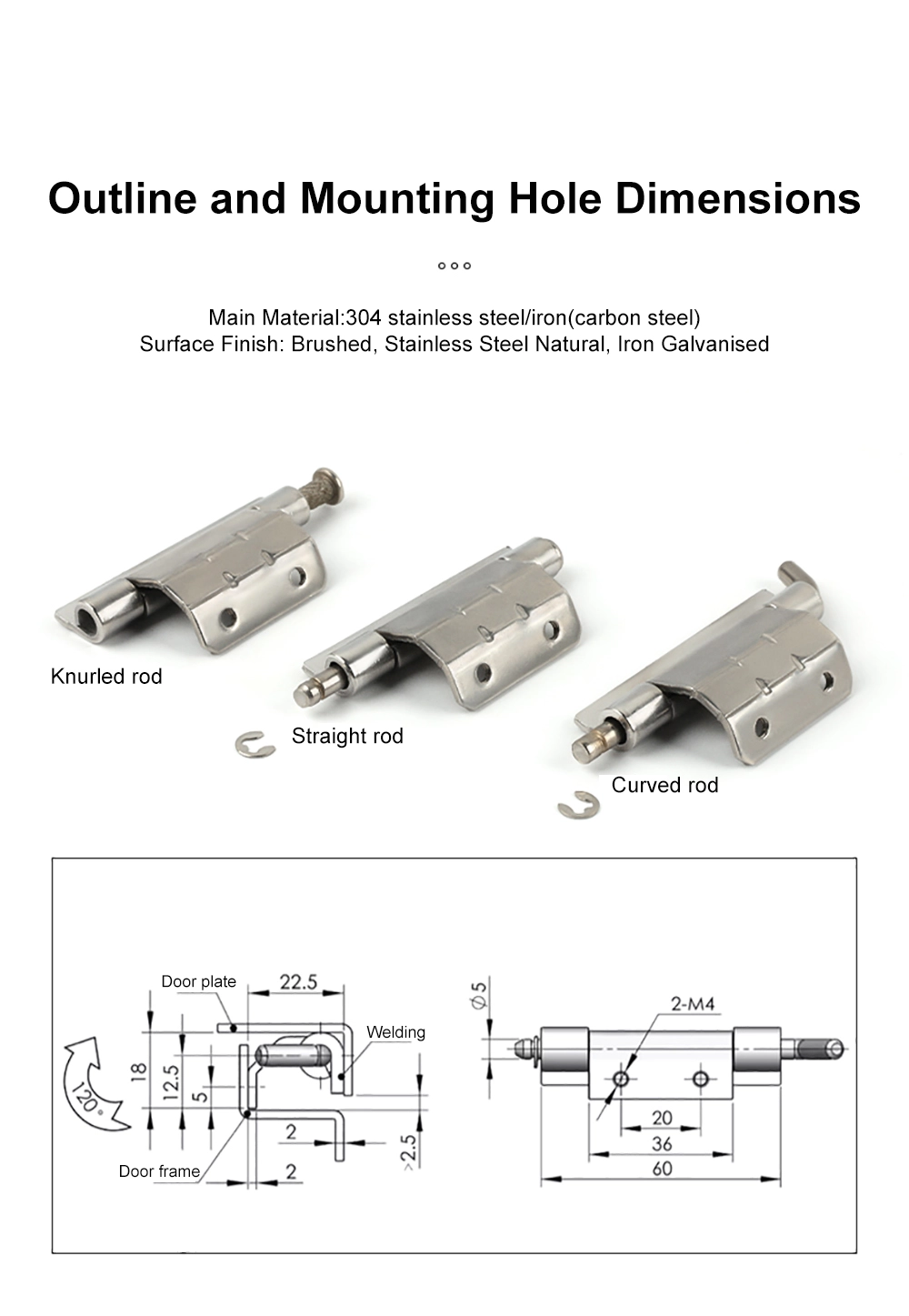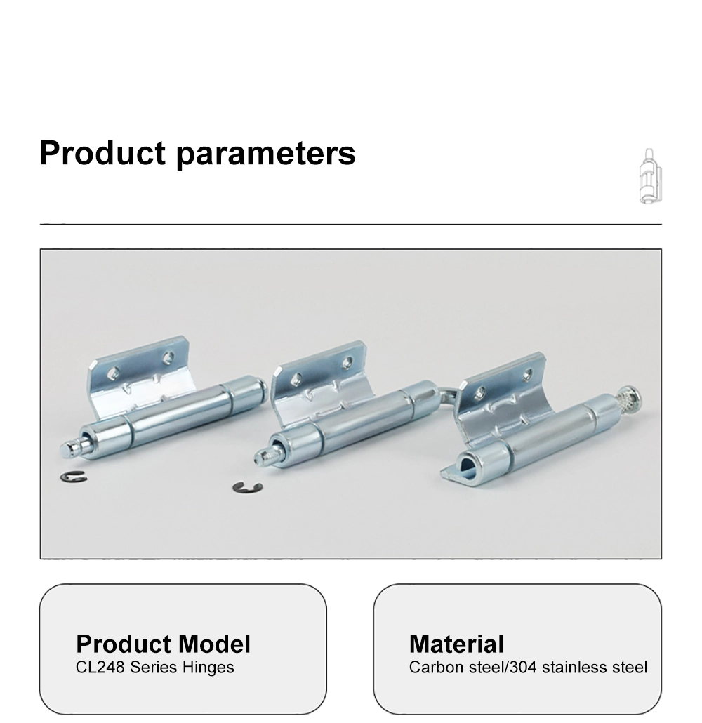 Yitai Lock has Distribution Board Swivel Hinge in stock for industrial cabinet projects. With an opening angle of up to 110°, the CL248 Distribution Board Swivel Hinge provides ample space for wiring, inspection, and maintenance. It can be fixed by screws or welding based on cabinet structure. With optional straight rod, bent rod, or knurled rod, the Distribution Board Swivel Hinge adapts to different door frame layouts and assembly methods.
