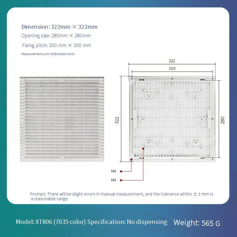 Installation requires only cleaning the mounting surface, aligning the dust cover, and pressing it into place. It is recommended that quarterly inspections for dust accumulation be conducted using a vacuum cleaner or compressed air for cleaning. Replace promptly when ventilation efficiency noticeably declines or damage occurs to maintain protection effectiveness.