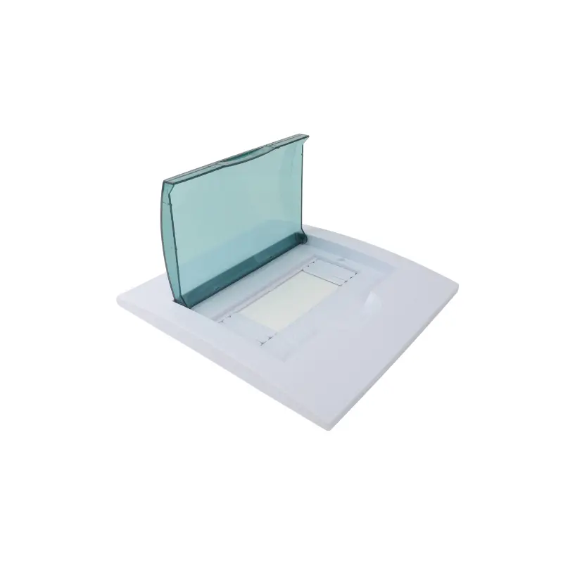 The Household Electrical Box Cover Panel is made of two materials: PC and ABS. The PC part is available in green or brown, while the white part is made of ABS material, which enhances the panel's strength and insulation performance. PC material has high light transmittance and UV resistance, while ABS material has strong mechanical strength.