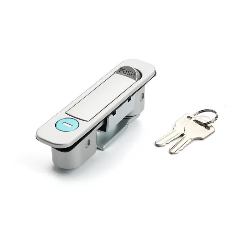 Yitai Lock's steel cabinet door locks make electrical components more secure. The lock is fitted flush with the surface of the cabinet door, ensuring both aesthetic appeal and space efficiency. The lock's smooth and reliable operation is ensured by a spring mechanism integrated into the handle.