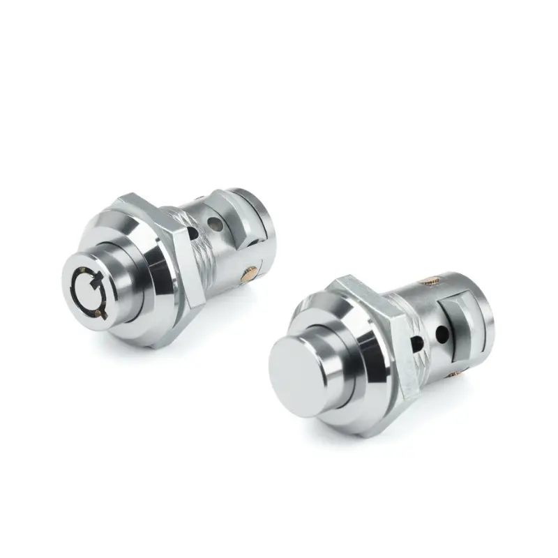 The push-button model automatically unlocks when the button is pressed and locks when the door is closed, providing basic security protection.The pin tumbler lock model uses a pin mechanism that only allows rotation with a matching key, providing anti-theft functionality.Both models utilise a zinc alloy construction to offer a certain level of strength, and feature added waterproof gaskets for extra practicality. The vending machines zinc alloy cylinder lock has a bright chrome finish for corrosion resistance.The maximum thickness of installed door panels is 10 mm.(For stainless steel materials, please contact us. We are currently manufacturing the molds.)